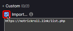 Paste on the text area the link of our list: https://www.notrickroll.link/list.php